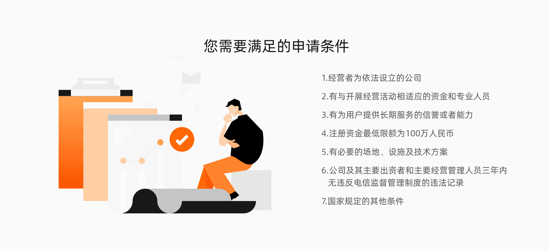 其他要求:无外资、经营范围需有经营电信业务、有自己的网站且网站体现有偿信息服务